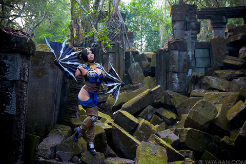 Since game footage of MKX was released, this version of Kitana has been on my "maybe, if I have time" cosplay list. Like many of my past costume projects, she hung around for a while, until a champagne-fueled lightbulb moment on NYE sent me into my work room for 4 days straight. I was going to Southeast Asia! Where I could take awesome location photos as Kitana!